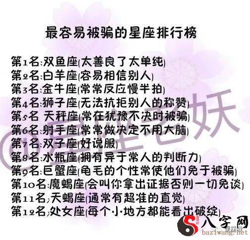 最非常容易上当受骗的星座排名榜