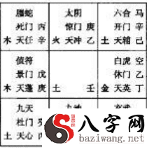 (3)日干为求测人,与日干相配之干为配偶。日干宫与日干相配之干相生相克、比和,又乘福星、吉门、吉神、吉格的也为配合默契。凡日干与日干相配之干处衰病亡墓绝地求生,带凶煞、凶门、凶煞、凶格,或相冲克或带刑的,尤其是有伤门,夫妻感情不融治或有分歧。(4)配偶彼此出生年的天干地支即年命,彼此年命落宫相生相克、比和则夫妻幸福,白头到老,相反则夫妻感情不和睦。例:女求测与老公的关联。